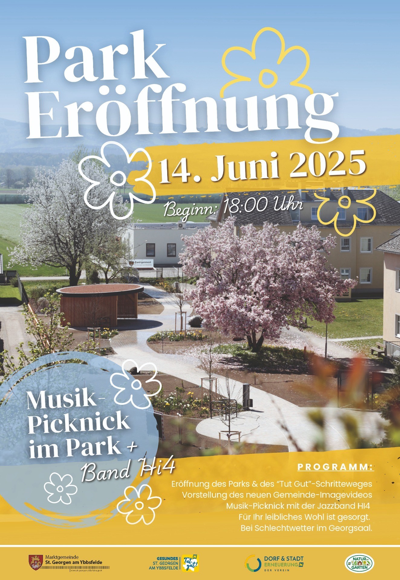 Die Marktgemeinde St. Georgen am Ybbsfelde lädt herzlich zur feierlichen Eröffnung der neu gestalteten Parkanlage und des „Tut Gut“-Schritteweges ins Ortszentrum ein. Gefeiert wird am Samstag, den 14. Juni 2025, ab 18:00 Uhr in der Hofgasse – mit Musik, Picknick und der Präsentation des neuen Gemeinde-Imagevideos.