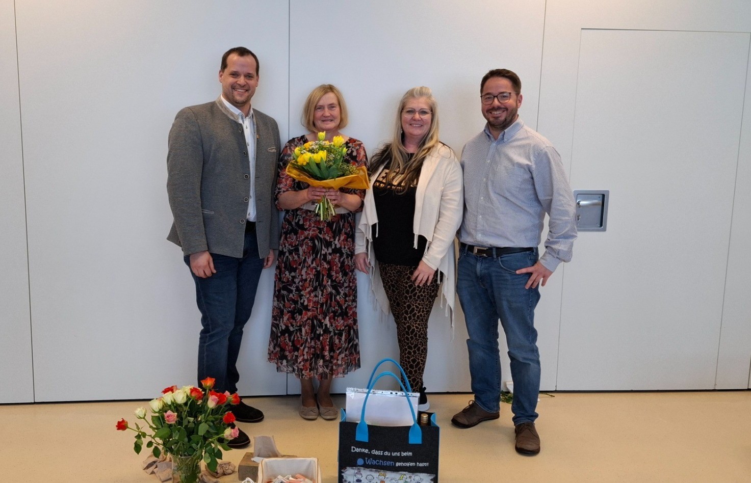 Am 15. Jänner fand dann die große Abschiedsfeier im Kindergarten statt. Bürgermeister Christoph Haselsteiner und Amtsleiter Georg Hahn bedankten sich im Namen der Marktgemeinde St. Georgen am Ybbsfelde recht herzlich und wünschten für den Pensionsantritt alles Gute.