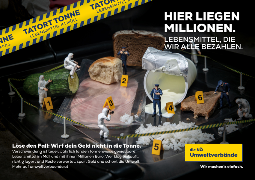 Fall gelöst? Noch lange nicht! Ob schrumpelige Gurken, trockenes Brot oder die Reste vom Vortag – mit ein wenig Planung und Kreativität lässt sich Lebensmittelabfall ganz leicht vermeiden. Jede und jeder kann dazu beitragen, dass weniger Essen im Müll landet. Wie das gelingt, zeigen viele praktische Tipps unter https://gda.gv.at/kampagne-tatort-tonne/.