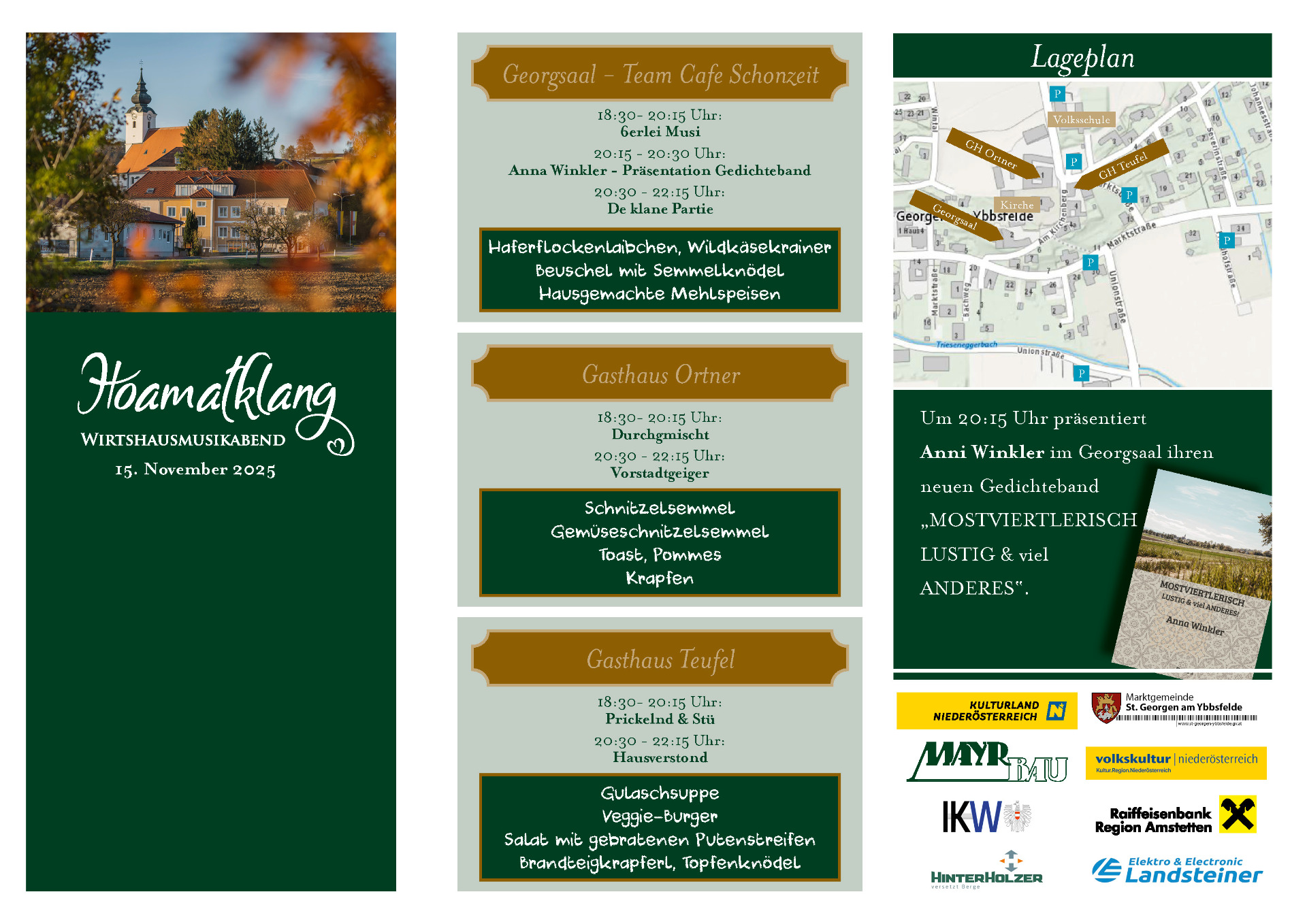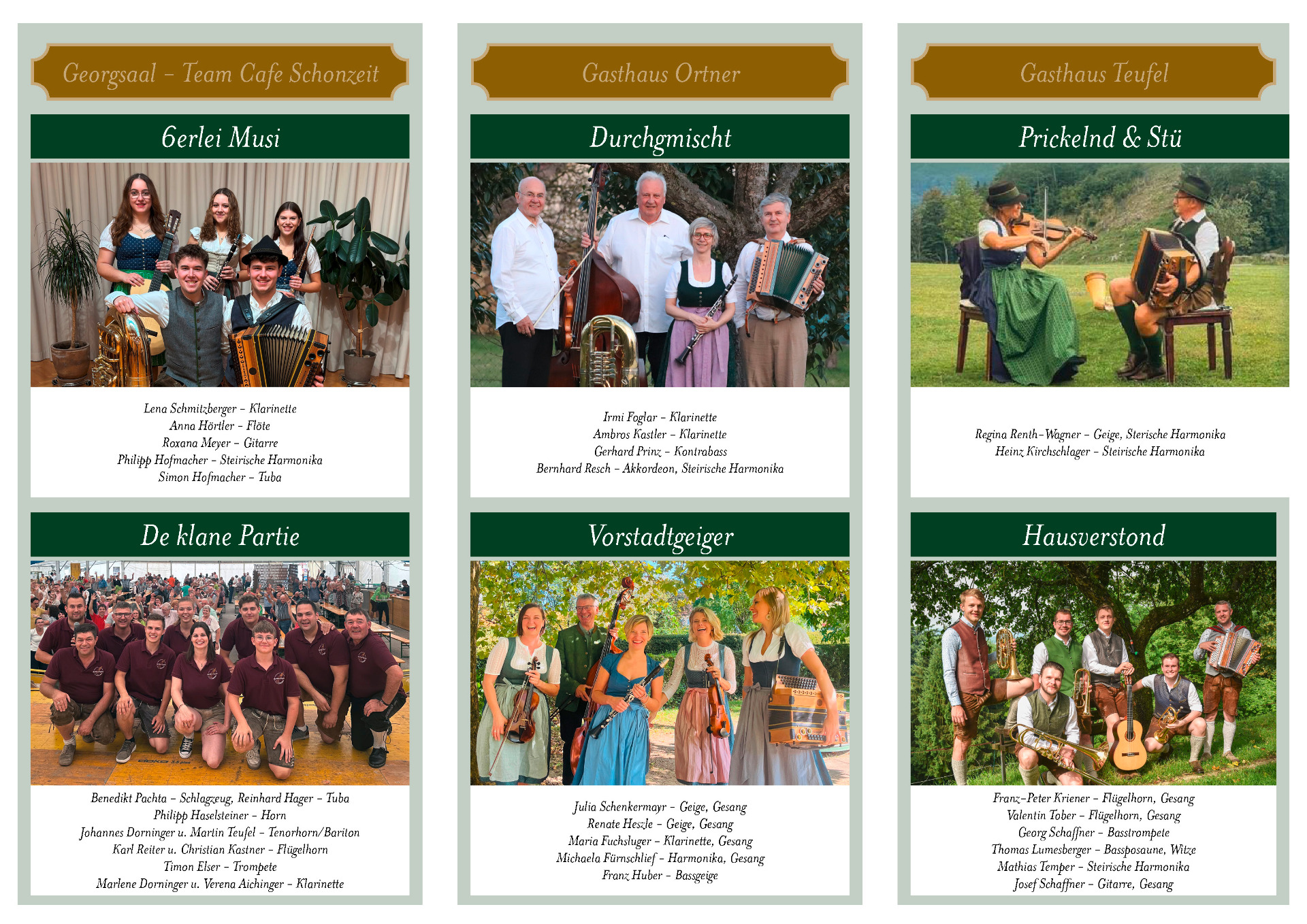 Bereits zum vierten Mal spielen unter dem Titel „Hoamatklang“ Musikgruppen direkt in den Gaststuben der Gasthäuser Ortner und Teufel sowie im Georgsaal (Cafe Schonzeit) auf.