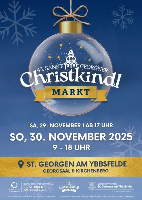 Am ersten Adventsonntag lockt der traditionelle St. Georgner Christkindlmarkt zum Besuch in den Ort. Entdecken Sie im Georgsaal Kunsthandwerk aus der Region und genießen Sie die selbstgemachten Leckereien unserer ortsansässigen Vereine.