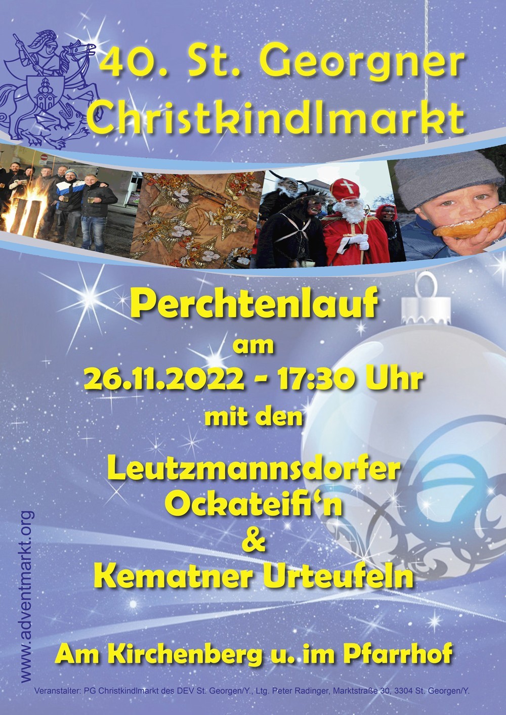 Auch in St. Georgen am Ybbsfelde hält am Vorabend des Christkindlmarktes diese Tradition Einzug. Die „Leutzmannsdorfer Ockateifi‘n“ und die „Kematner Urteufeln“ präsentieren ihre Masken und führen den Umzug vom Marktplatz zum Pfarrhof durch. Dort wird auch eine Feuershow zum Besten gegeben.