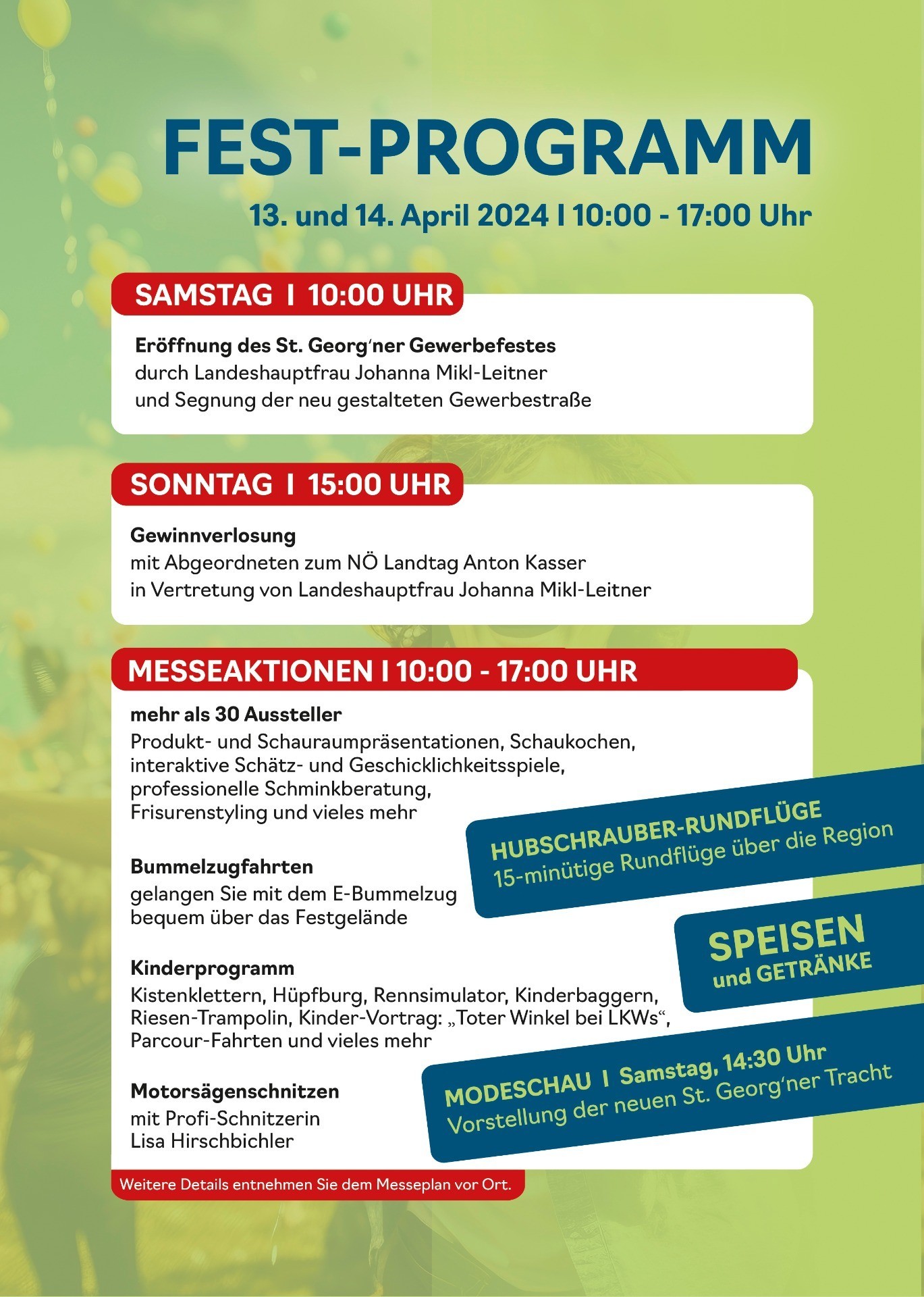 10 Uhr - Eröffnung des St. Georg‘ner Gewerbefestes durch Landeshauptfrau Johanna Mikl-Leitner mit anschließender Segnung der neu gestalteten Gewerbestraße