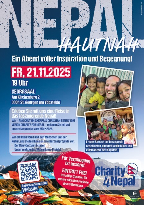 Erleben Sie eine Reise in das faszinierende Nepal! Ang Chuttin Sherpa und Christian Ebner vom Verein „Charity for Nepal“ nehmen Sie mit auf ihre Nepalreise vom März 2025.