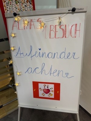 In diesem Schuljahr besucht Puppe ALMA jede Klasse viermal. Frau Lehrerin Baumgartner leitet das Projekt zum Thema Herzensbildung. Jeder Besuch steht unter einem anderen Thema: 1. Aufeinander achte...