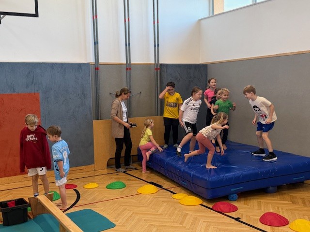 Im Dezember waren die angehenden Schulanfänger aus dem Kindergarten bei uns in der Schule zu Besuch, um mit den Kindern aus den 3. Klassen zu turnen.
